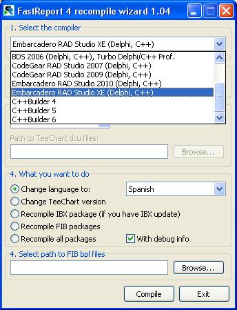 Y finalmente, también podemos acceder al compilador de recursos que nos va a permitir que los informes se nos muestren en el idioma deseado. Esta opción es otro de los detalles que me gustan de FastReport, que nos permite fácilmente y sin problemas recompilar los recursos y cargar los adecuados al idioma que va a mostrar el informe.